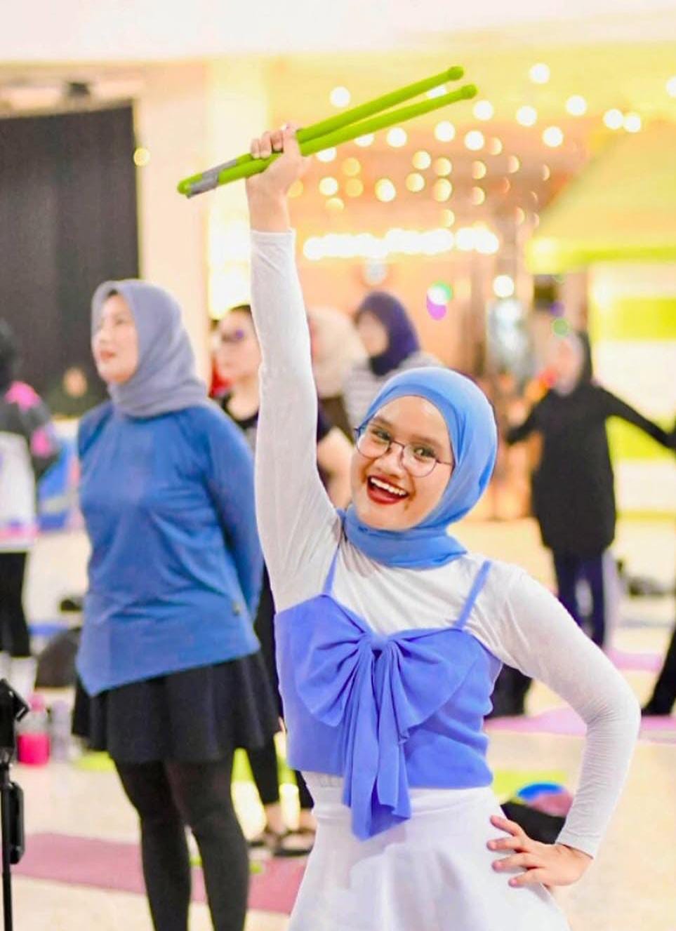 Namun, di tengah rutinitas pekerjaan yang padat, ia menemukan Poundfit, olahraga kombinasi kardio, dansa, dan gerakan energik menggunakan stik (Ripstix) sebagai pelarian yang menyenangkan.