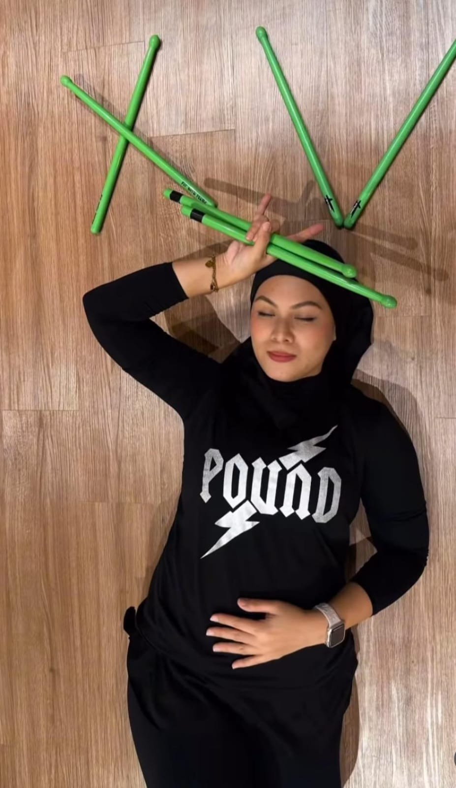 Musik yang menghentak, gerakan yang dinamis, serta komunitas yang penuh semangat membuatnya merasa Poundfit lebih dari sekadar olahraga ini adalah bagian dari jiwanya.