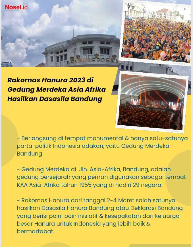 Nosel Bandung- Partai Hati Nurani Rakyat, atau Hanura baru saja sukses menyelenggarakan acara Rapat Koordinasi Nasional atau Rakornas 2023 dari tanggal 2-4 Maret di Kota Bandung.