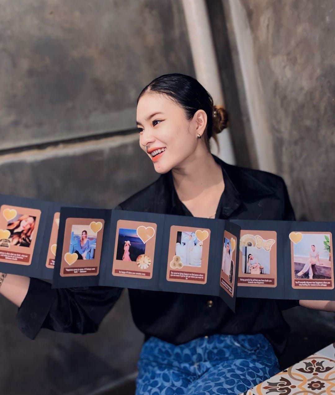 Dan jangan pernah menyalahkan keadaan atau dirimu sendiri atas kesalahan masa lalumu. Tetaplah jadi wanita yang tenang dalam menyikapi hal apapun karena kepercayaan dirimu dapat menambah nilai plus bagi orang-orang yang melihatmu. Dan mari meromantisi hidup sesukamu dan sebahagia kamu.”