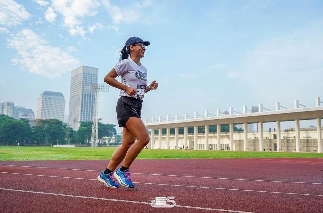 “Lari sebenarnya sudah saya lakukan dari kecil, namun menjadi rutin berlari baru saya lakukan dari 2020 saat pandemi. Saya biasa berlari pagi hari sebelum bekerja, kalau weekend berlari sama teman-teman,” ungkap Irene.