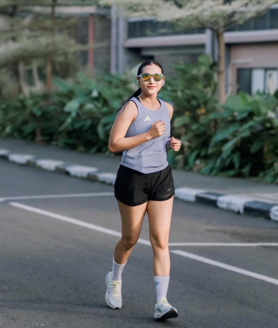 Berbagai aktivitas fisik ia jalani dengan disiplin dan semangat, mulai dari gym, running, pilates, padel, hingga berenang.