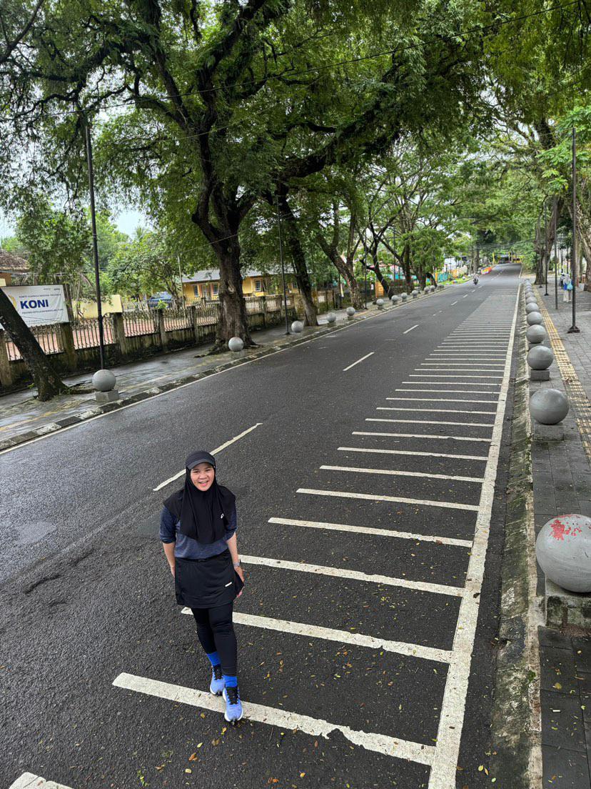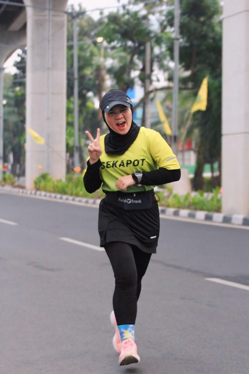 “Awal aku bisa suka lari itu bermula pada tahun 2021 aku melakukan diet dengan defisit kalori. WO di rumah dan lari yang hanya dulu 2 – 3K setiap pulang kerja, buat aku lost berat badan yang jauh banget dari sebelumnya dan seiring berjalannya waktu lari jadi hobi yang buat happy ngejalaninnya sampai sekarang. Malah sekarang nggak lari merasa aneh,” tutur Monita.