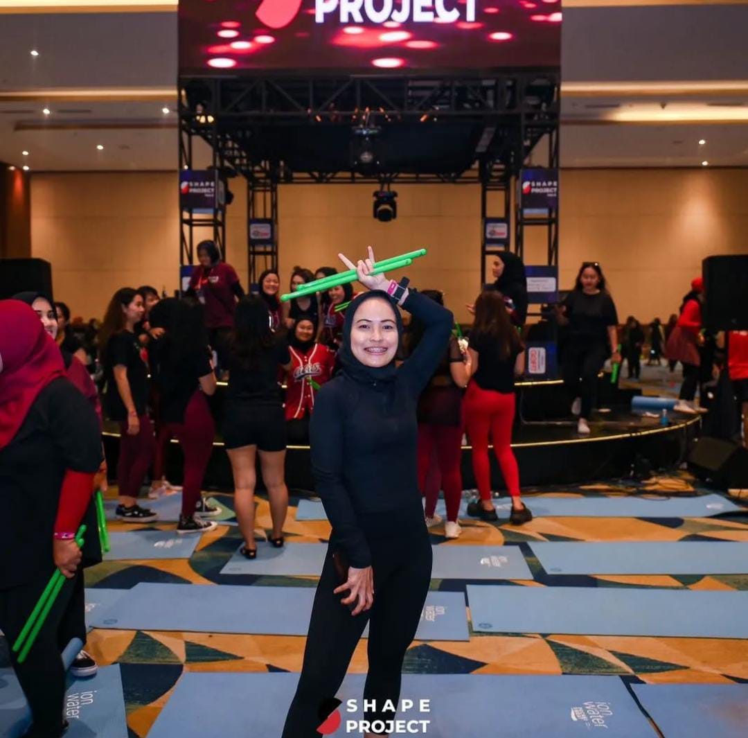 “Awal suka Poundfit karena penasaran ini olahraga sepertinya seru pake stick seperti stick drum,” cerita Maya tentang momen pertemuan pertamanya dengan olahraga unik yang menggabungkan gerakan kardio intensitas tinggi dengan gerakan meniru memainkan drum.
