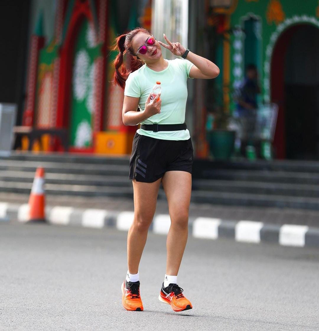 “First event running aku 5K Kuching Marathon 1 Oktober 2023, saat ini aku sedang mempersiapkan diri untuk 21K Kuching Marathon 2024 akhir bulan ini,” kata Mimi.