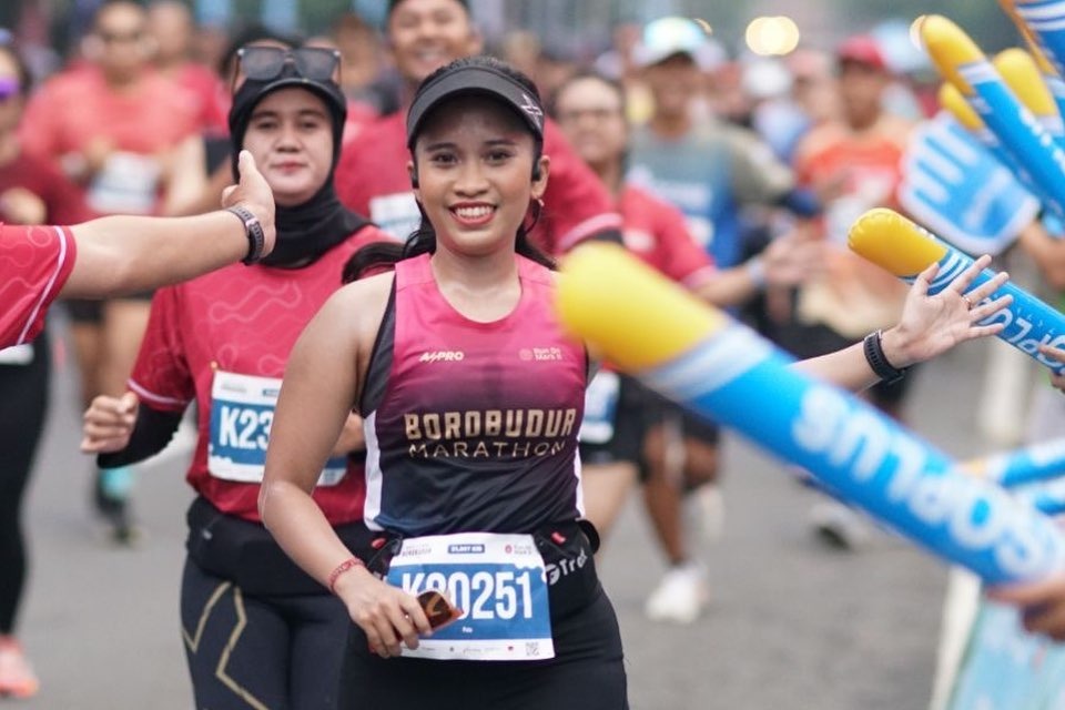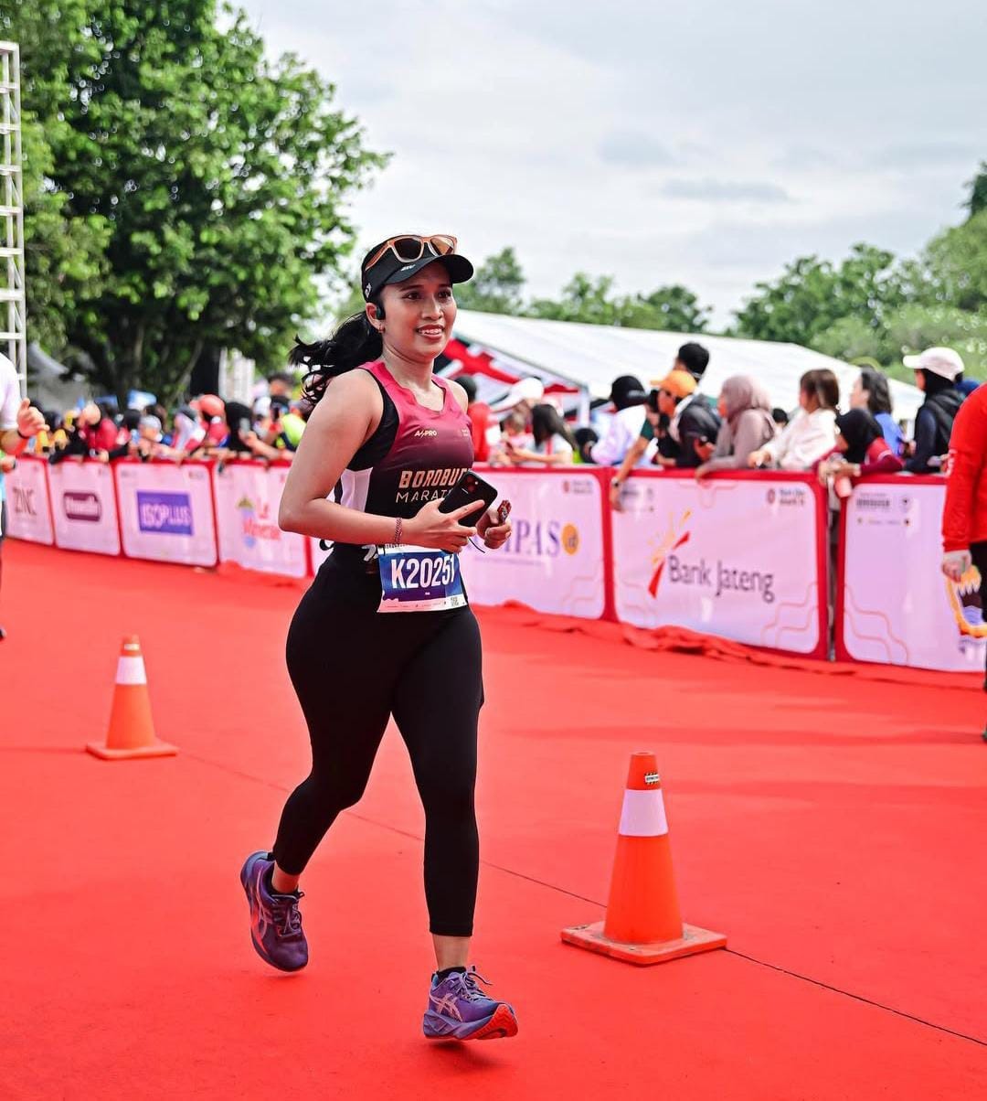 “Sukanya banyak banget. Tentunya rasa bahagia, puas, dan bangga sama diri sendiri yang ternyata bisa melangkah sejauh ini di dunia lari.