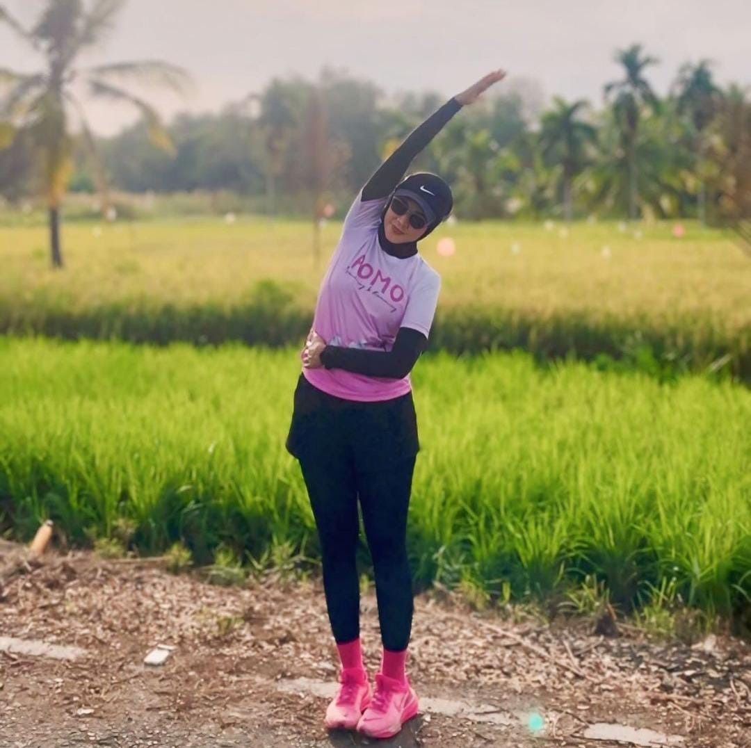 Sandra juga menambahkan, “Saya biasa run setelah salat subuh karena udara masih sangat segar, kalau sore hanya sekali-sekali jika cuaca lagi mendung. Saya sudah mengikuti event tiga kali.”