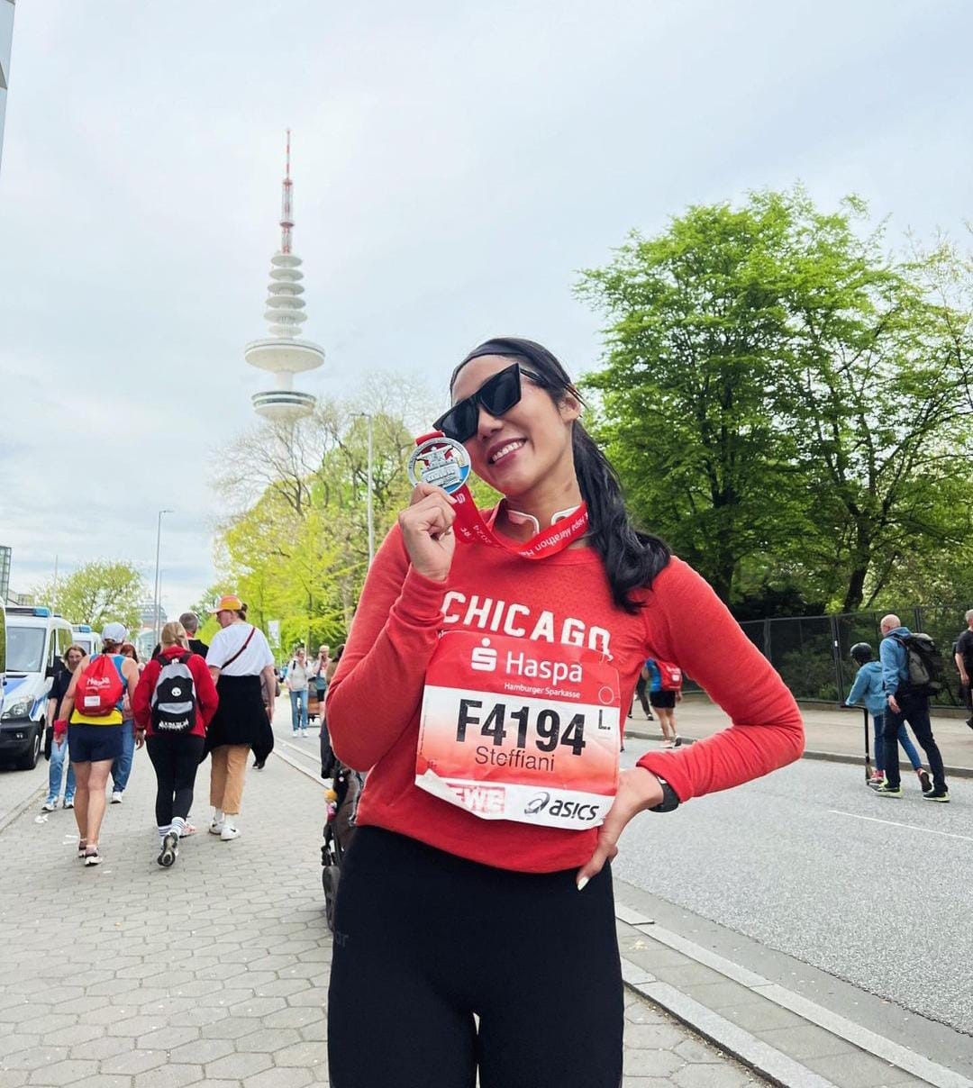 “Tapi baliknya ke lari atau gym lagi. Eventnya buanyaak. Event terakhir aku baru aja full marathon di Hamburggg. Seru banget! Viewnya, rutenya, cheeringnya bener-bener berkesan. Cuma cuacanya yang jadi sedikit challenge, lumayan windy dan sempet ujan juga di KM-KM terakhir,” kata Steff.