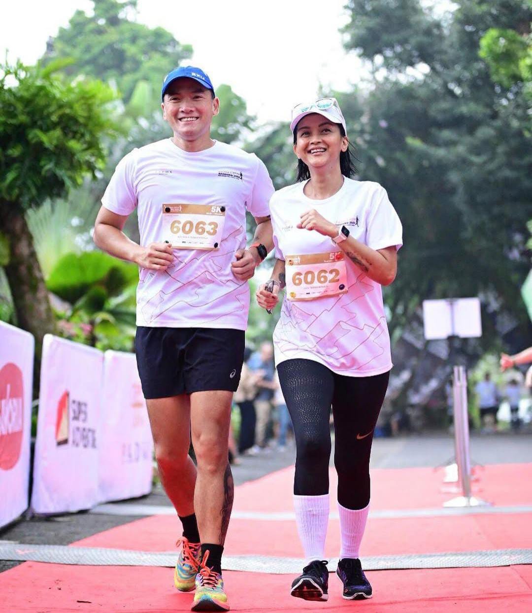 “Aku ibu rumah tangga dengan aktifitas lari yg tadinya di paksa-paksa sama suami,” akunya dengan jujur dan disertai tawa.